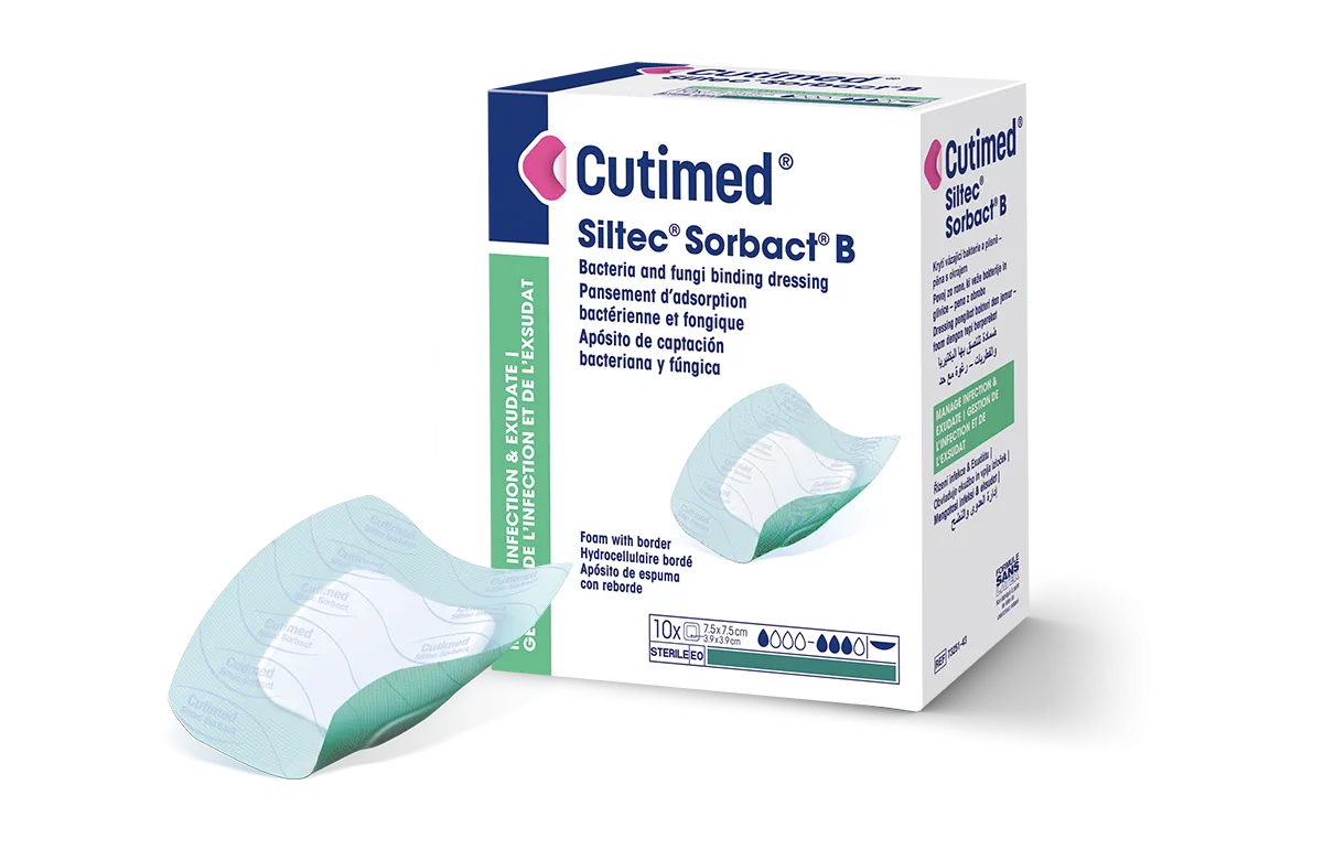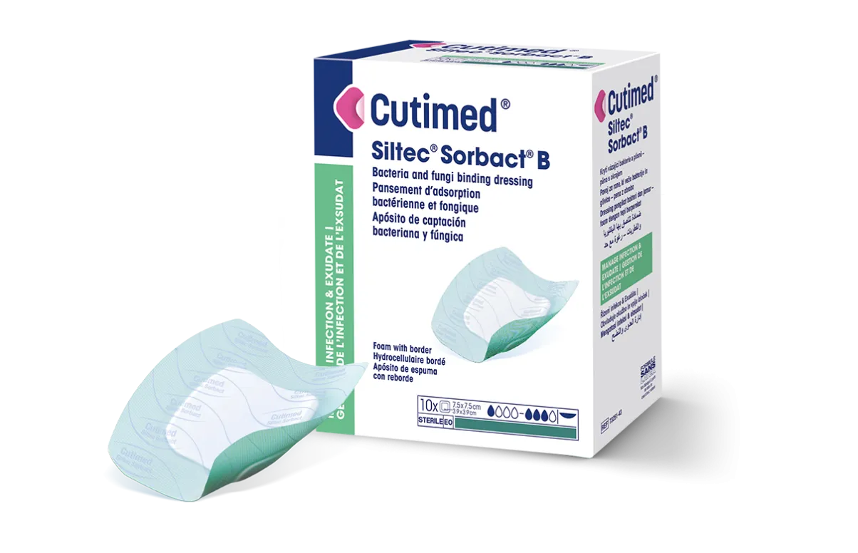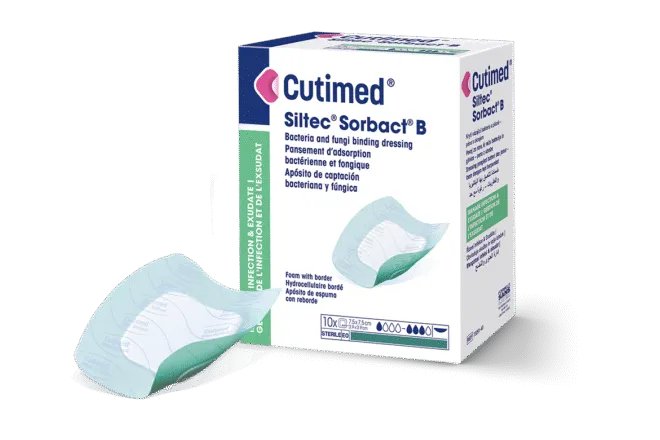 Cutimed Siltec Sorbact B on bakteereja ja sieniä sitova Sorbact Technology -menetelmään perustuva haavasidos.